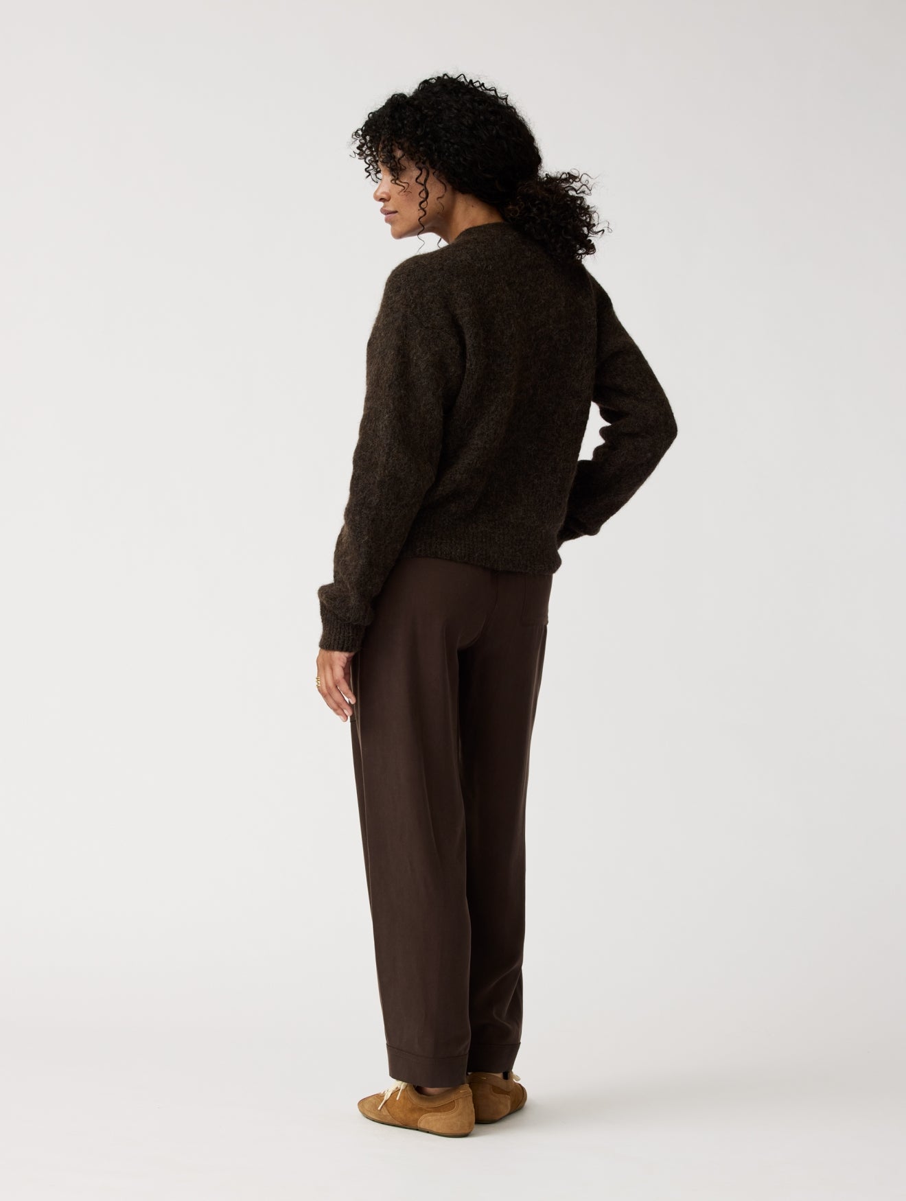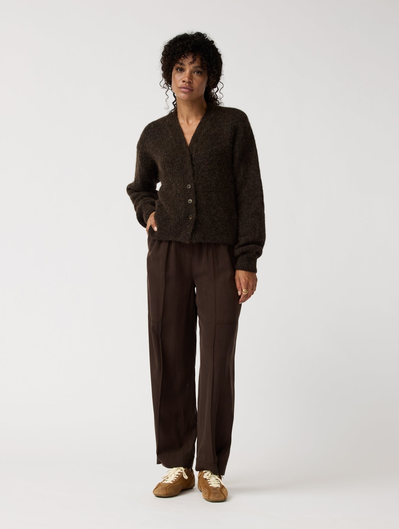 Boxy bomber-style cardigan with a V-neckline and button-through front, crafted in a rich, heavy alpaca knit. The bold silhouette is softened by the incredibly soft feel of the yarn.... Warm, cosy, and refined — the perfect layering piece for cooler days. Made from a luxurious blend including the softest baby alpaca and pure virgin wool.