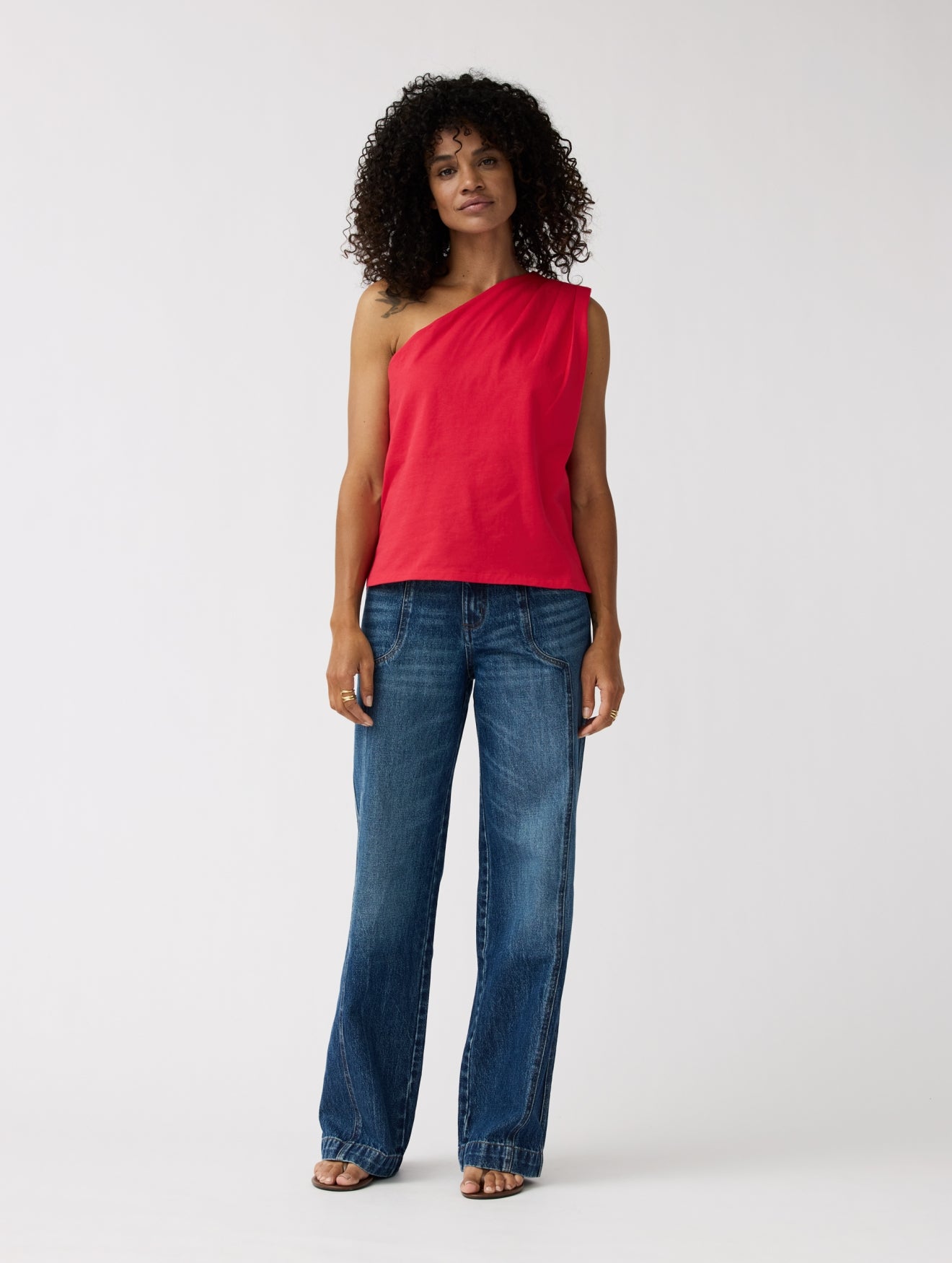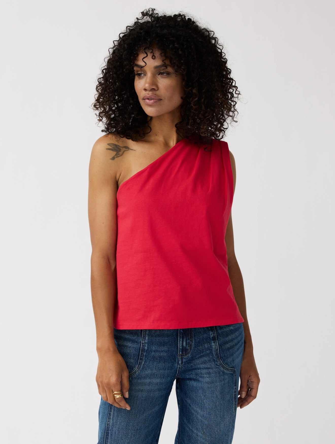 Make a bold statement with the Top Levy. This asymmetrical, one-shoulder design in soft organic cotton is striking yet minimalist.... A casual piece that instantly draws attention.