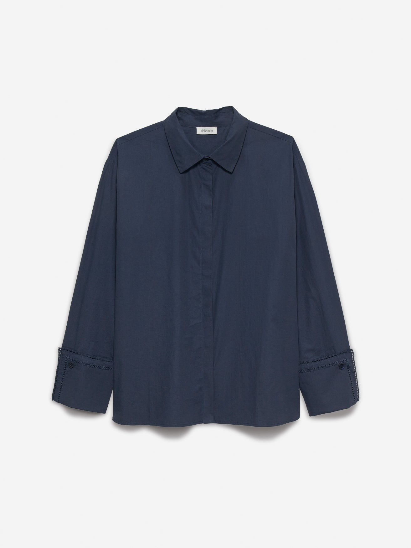 Blouse van 100% organic cotton poplin, met een klassieke kraag en een heerlijk oversized pasvorm. De luchtige stof draagt comfortabel en voelt fris aan op de huid.... Wat deze blouse bijzonder maakt, is de prachtig afgewerkte, wijde mouw met manchet – een subtiel detail dat zorgt voor een sophisticated uitstraling. Gemaakt van 100% biologisch katoen: natuurlijk, ademend en met zorg geproduceerd.