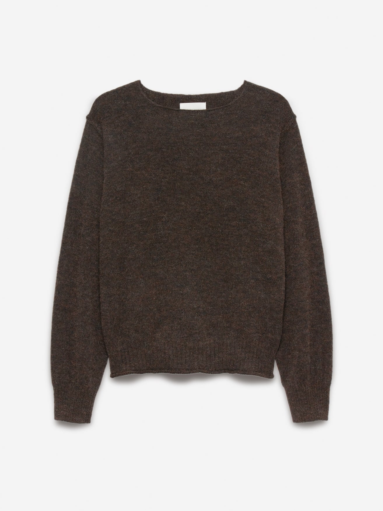 Zachte sweater in een luxe mix van baby alpaca en wol. De boothals geeft het model een elegante uitstraling, terwijl de brede manchetten zorgen voor een stoere, moderne twist.... Een comfortabele en vrouwelijke knit die moeiteloos te combineren is. Gemaakt van een mix van de zachtste baby alpaca en zuivere scheerwol – warm, licht en heerlijk zacht op de huid.